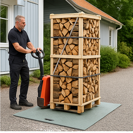 Beskyt indkørsler, græs og belægning – og gør leveringerne nemmere. Den kompakte 180×100-plade er let at håndtere, tåler hårdt brug og giver jævnt underlag til palleløfter ved levering af vores brænde og træpiller m.m.