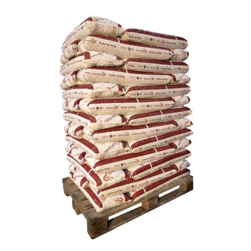 En sæk træpiller til opvarmning vejer 16 kg. En palle indeholder 52 sække og vejer i alt 832 kg.